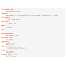 Particuliers cherchant des devis de construction de maison traditionnelle ou maison en bois . Professionnels cherchant des rdv pour alimenter des commerciaux . Voici ce que nous récoltons: Date de la demandeNom, prénomadressecode postal et départementtéléphonemailType de...